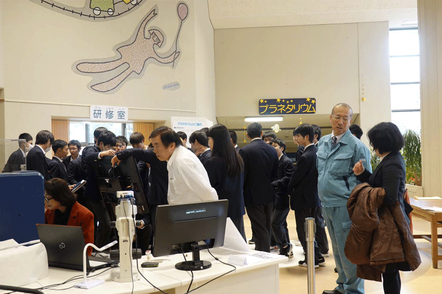 米子工業高校生が授業の一環で電子顕微鏡を体験。