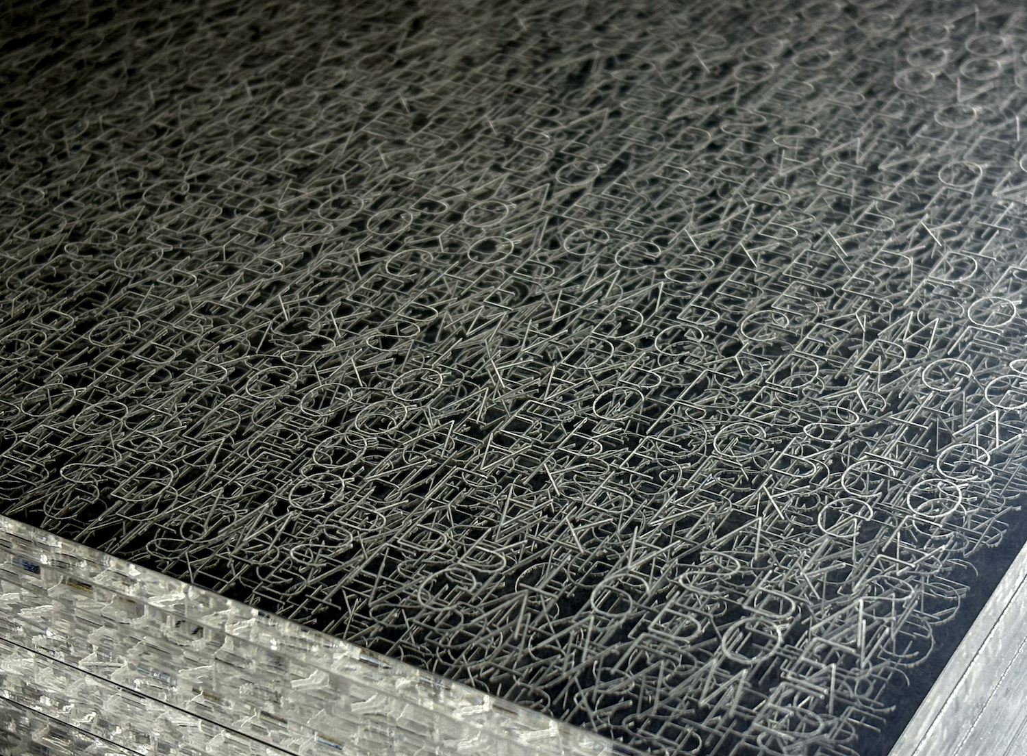 本作は、私自身のエクソーム解析にもとづき、感情・思考・創造性に関わる複数の遺伝子を選び出し、それらに由来するアミノ酸配列を透明なアクリルに彫刻したものである。変異のある部位は反転文字として浮かび上がる。それは欠陥ではなく、私という存在をかたちづくる固有の響きである。刻まれた配列は、生命の記憶を映す断章であり、同時にアーティストとしての私を綴った自叙詩でもある。
