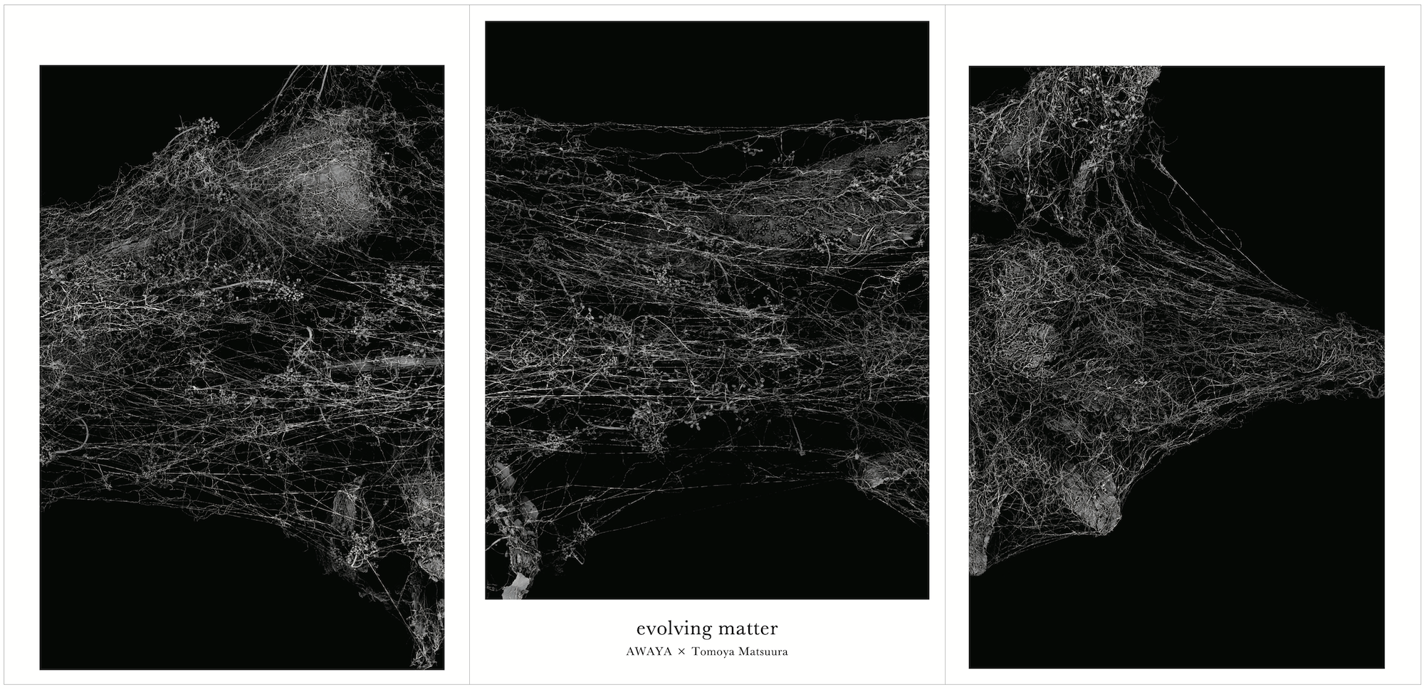 もっとも単純な水素原子から始まった元素の”進化”は、ヘリウム、酸素、金属など様々な元素へと進化を遂げ、さらにより複雑な分子、化合物を経て、有機物、無機物、生命体、人工物へと進化し続け、今この世界を構成している。それらを物質、波動、情感といった様々な角度から多次元的に解釈し空間展示としての表現を試みる。