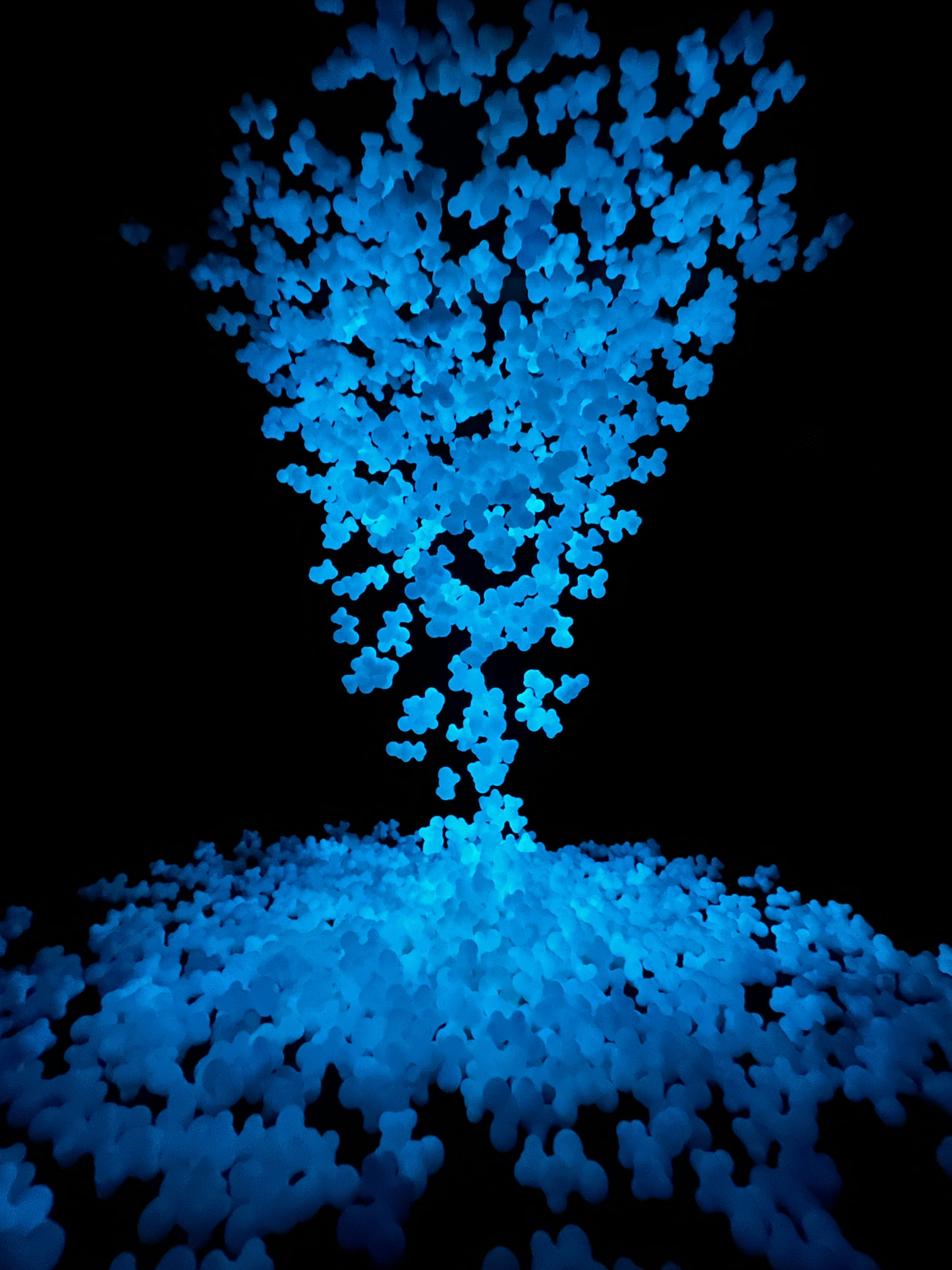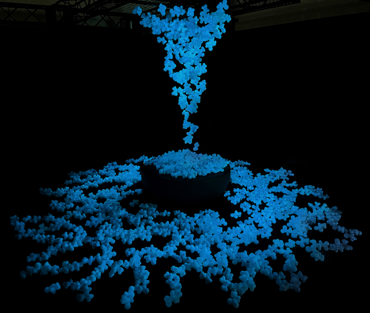 生命の起源に関する仮説の一つであるGADV仮説(タンパク質ワールド仮説)によれば、原始地球に存在していた4種類のアミノ酸がランダムに結合することで生命が誕生したとされている。この作品では、原始地球に存在していたとされる4種類のアミノ酸(アラニン、アスパラギン酸、グリシン、バリン)の分子構造を基に制作したオブジェを展示。展示されたオブジェは観覧者が自由に動かすことができ、偶然の組み合わせによって新たな形が生まれる。